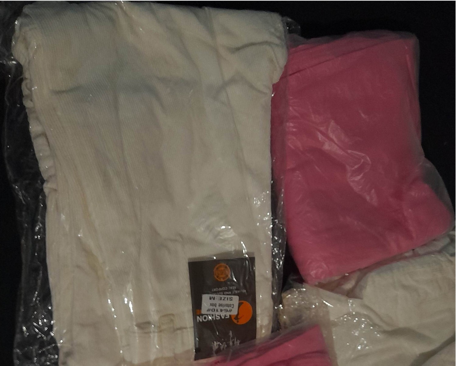 pants are available for girls in white and pink color . Sizes (S,M ,L)